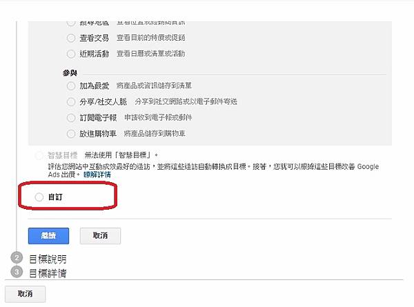 點選 Adwords 右上角 對象與設定 -> google analytics(闡明)