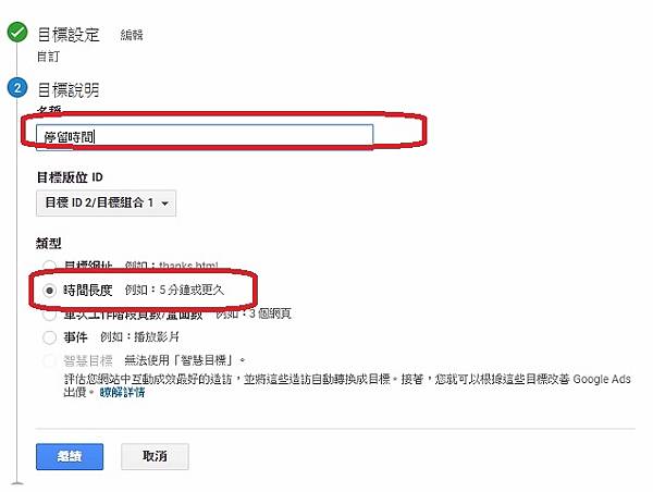 再產生一個目的監控逗留時間(客戶逗留在網站的時候)