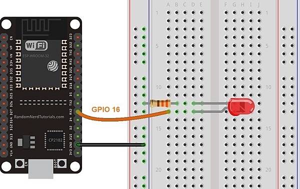 典範程式將使接在Pin16的LED逐步亮起並熄滅,範例複製於 https://randomnerdtutorials.com/esp32-pwm-arduino-ide/