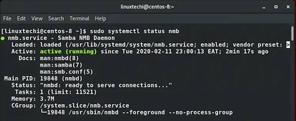 一樣確認 nmb 服務是不是正在運行,就像我們對 smb 辦事所做的那樣: